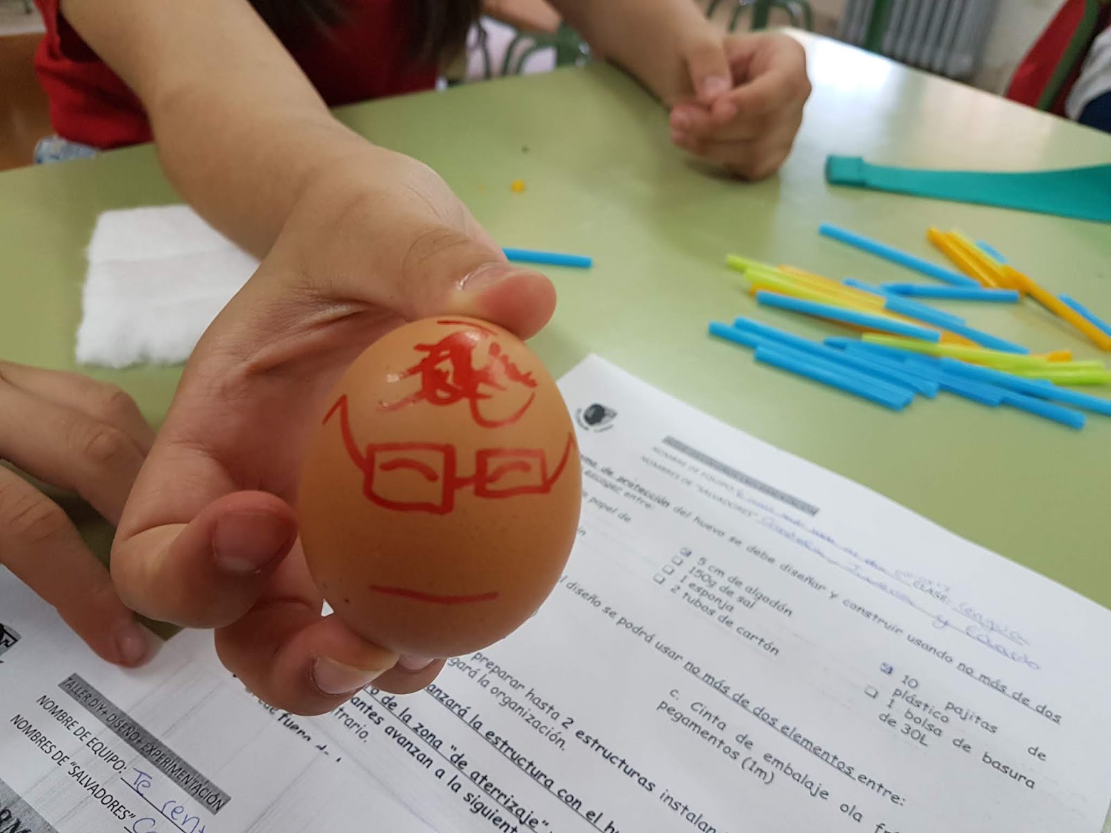 Con 2 ESO nos hemos lanzado (unos huevos muy "re-diseñados") al "egg drop challenge", cambiando el taller inicial de construcción de las protecciones por las escaleras de emergencias del parking, llegando a lanzar los proyectos desde la 5 planta (con un único huevo superviviente tras el vuelo)